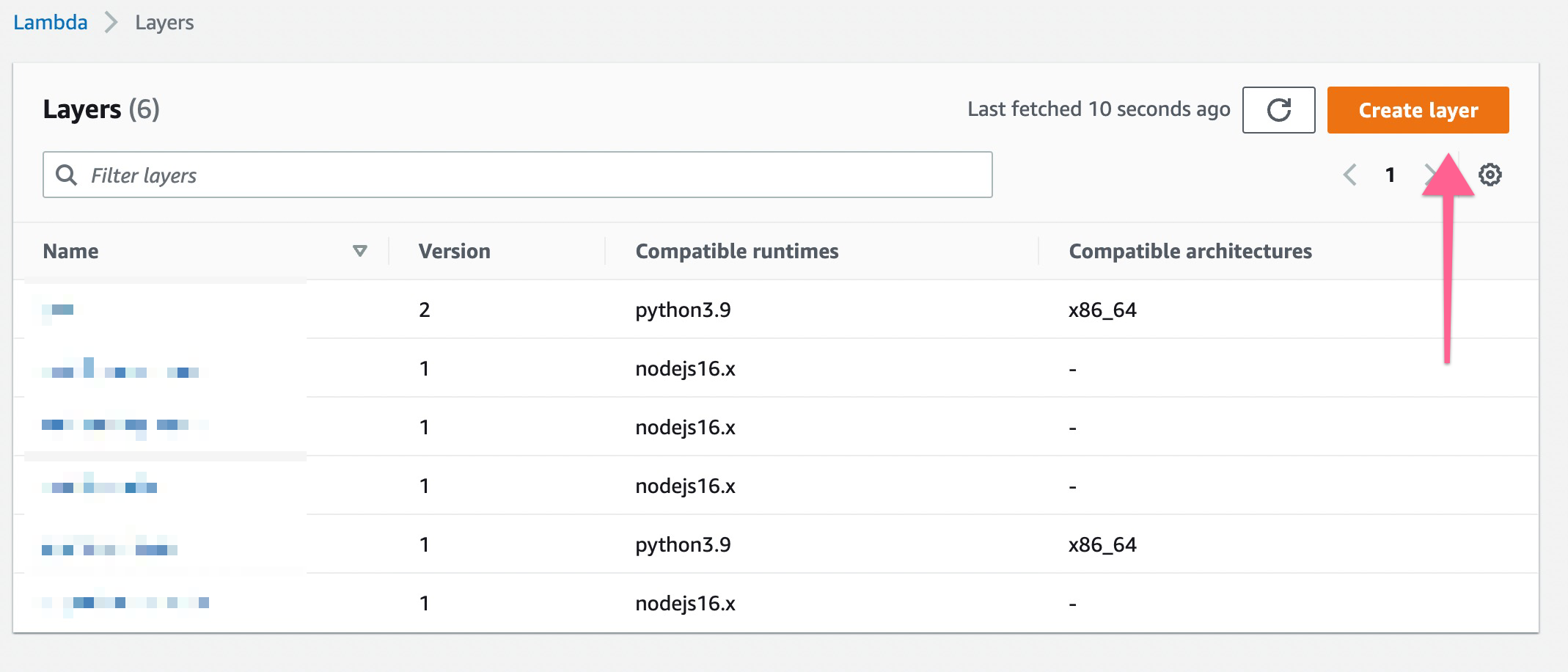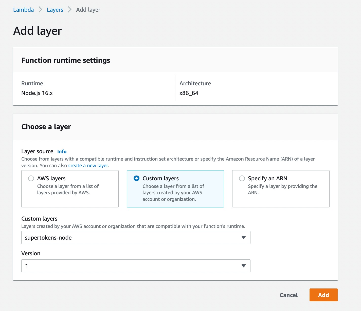 2) Upload SuperTokens lambda layerOpen AWS Lambda dashboard and click on layers: